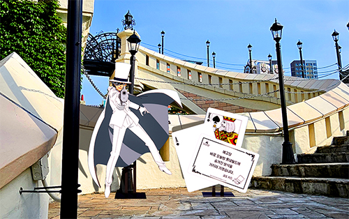 매직아일랜드 매직캐슬 야외계단에 괴도키드가 나타나 예고장을 날립니다.