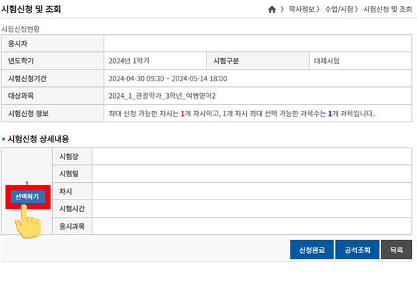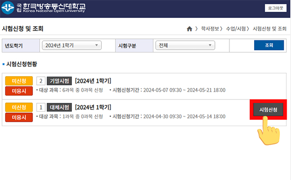 신청하는 방법은 기말시험 신청하는 법과 같습니다.