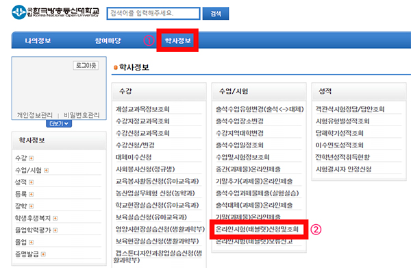 방송통신대학교 일명 방통대에서는 출석수업을 못 들어서 대체시험을 보게 되는 경우, 대체시험 신청을 해야 됩니다.