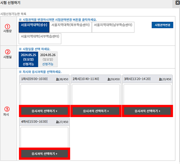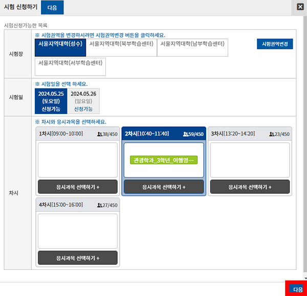 시험장, 시험일을 선택한 후,