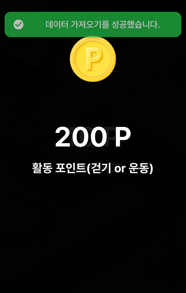 하루 8,000보가 넘으면 200P 적립됩니다.