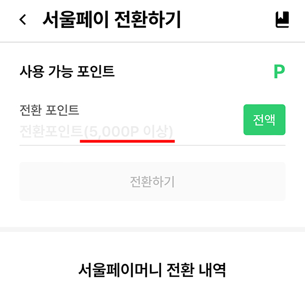 5,000P이상이어야 서울페이로 전환이 가능합니다.