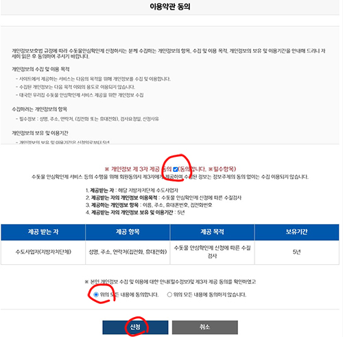 (* 모바일 신청접수 시 오류가 발생할 수 있으므로 가급적 PC로 수질검사 신청하시기 바랍니다.)