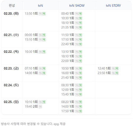 TV로 tvN과 tvN SHOW, tvN STORY 채널에서 방영하는 시간에 맞춰 보시면 됩니다.
