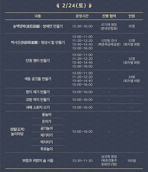 2월 24일 오전 10시 30분~ 11시 30분에 북촌문화센터 방문객 100명에게는