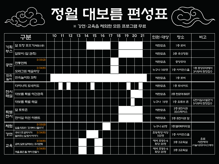 정월 대보름 당일 날씨가 흐릴 경우 천체관측이 취소될 수 있습니다.