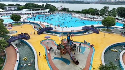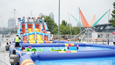 - 시원한 물줄기가 쏟아지는 아쿠아링, 에어바운스, 슬라이드, 통돌이 등 다양한 놀이기구 비치
