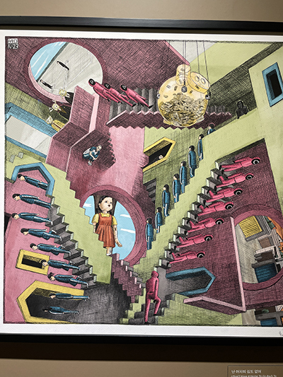 비록 저는 영화 설국열차를 보진 않았지만 열차 칸마다 내부를 그려놓은 것이 인상적이었습니다.
