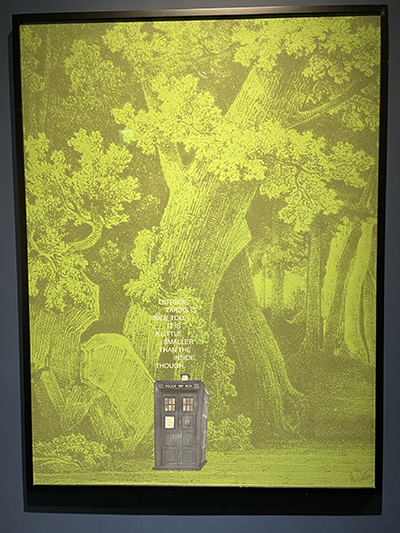이 전시의 포스터 일러스트인 그랜드 부다페스트 호텔은 멋진 액자로 장식되어 있었습니다.